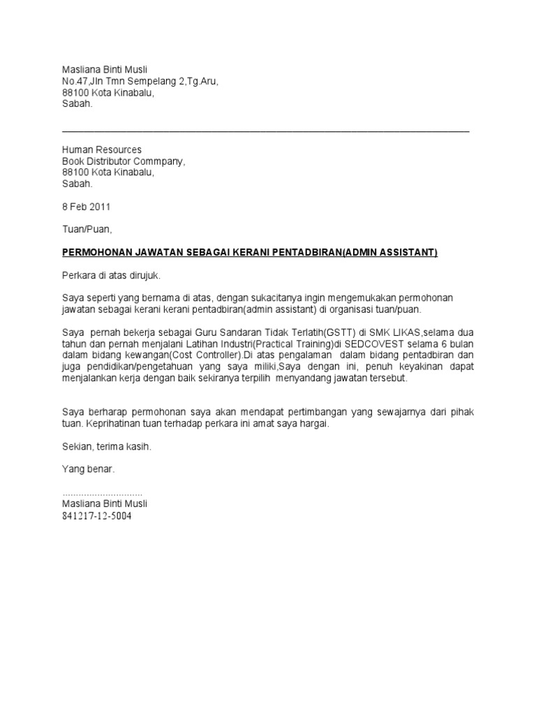 Contoh Surat Permohonan Kerja Kerani Zuhaidi bin hilmi no. Amendment i use wifi sorry for my m. Surat permohonan boleh ditulis dalam bahasa melayu dan juga bahasa inggeris mengikut kesesuaian jawatan yang dipilih.