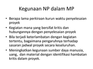 Fokus pada perencanaan penjadwalan dan pengendalian aktivitas kritis. Anda mempunyai dua cara untuk menentukan peratus tidak biru. Memperkirakan durasi setiap aktivitas proyek.